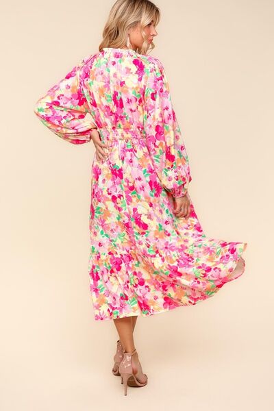 Haptics Full Size Floral Surplice Balloon Sleeve Dress with Side Pockets tt