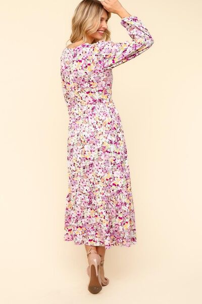 Haptics Full Size Floral V-Neck Long Sleeve Dress with Side Pockets tt