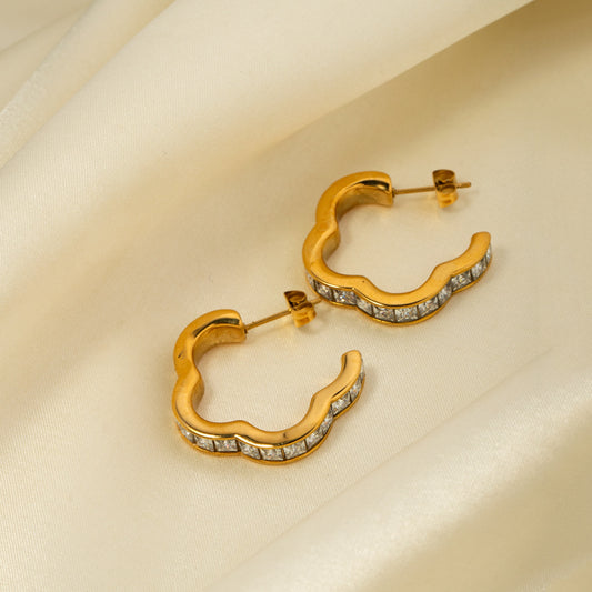 Stainless Steel Inlaid Zircon C-Hoop Earrings