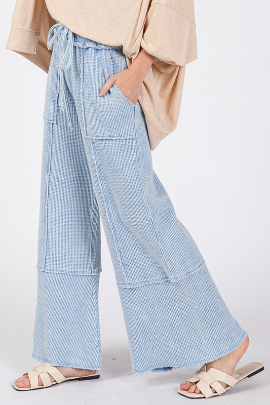 SAGE + FIG Waffle Textured Wide Leg Mineral Washed Pants tt