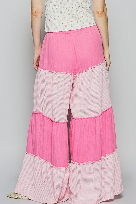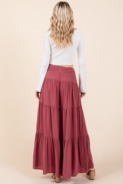 Mittoshop Tier Detail Smocked Elastic Waist Wide Leg Pants tt