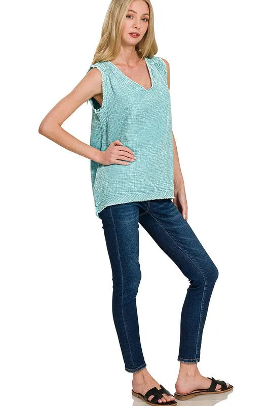 Zenana Double Gauze Raw Edge Acid Washed Tank tt