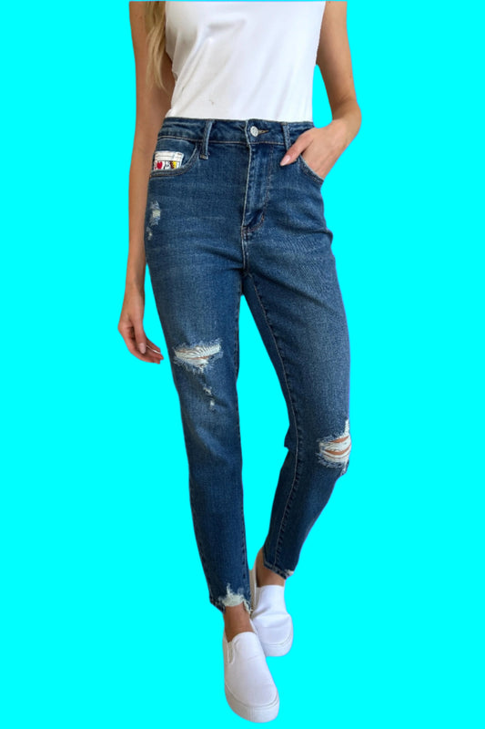 Judy Blue Full Size Queen Of Hearts Coin Pocket BF Jeans
