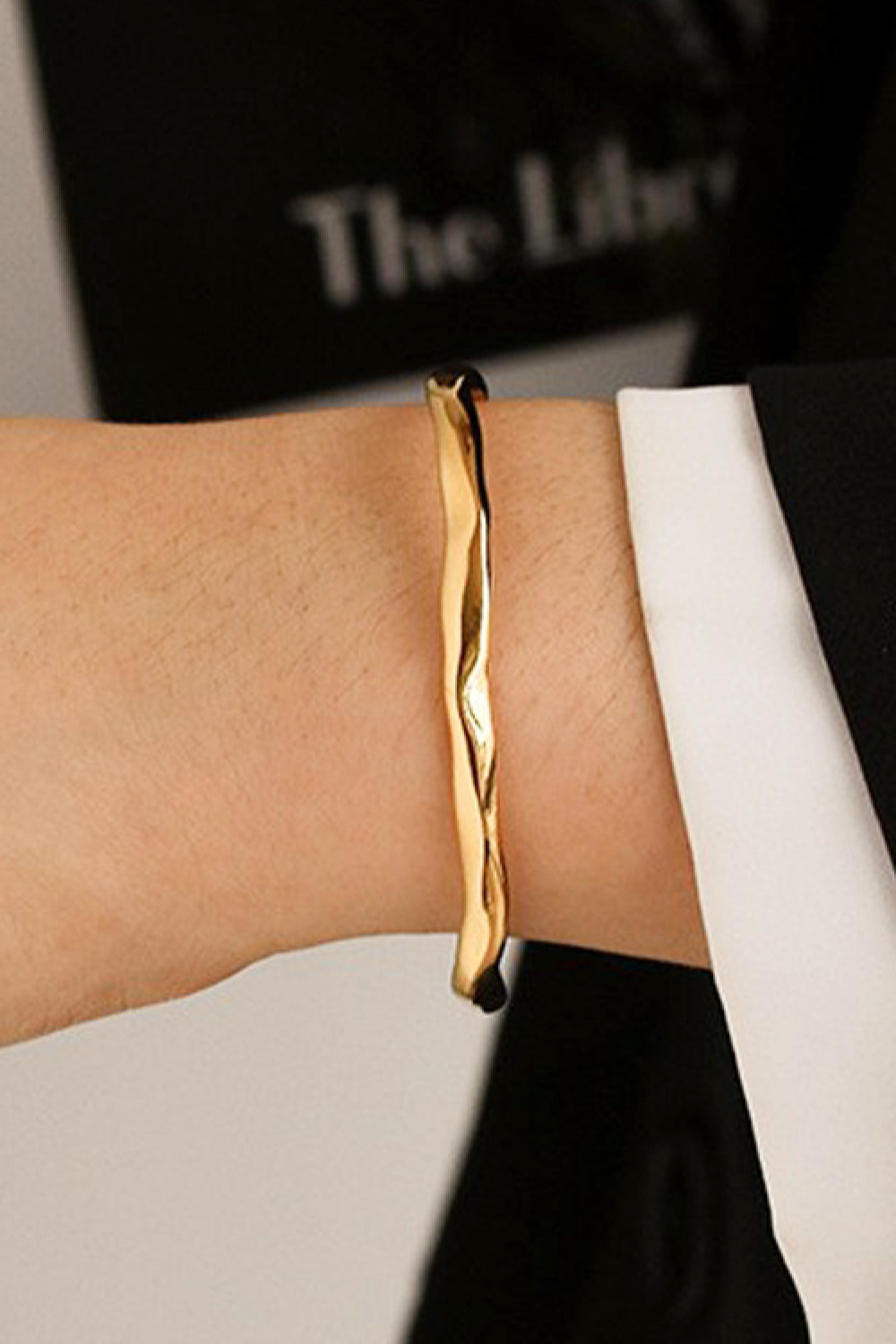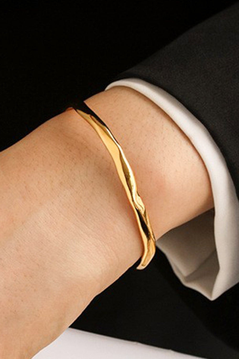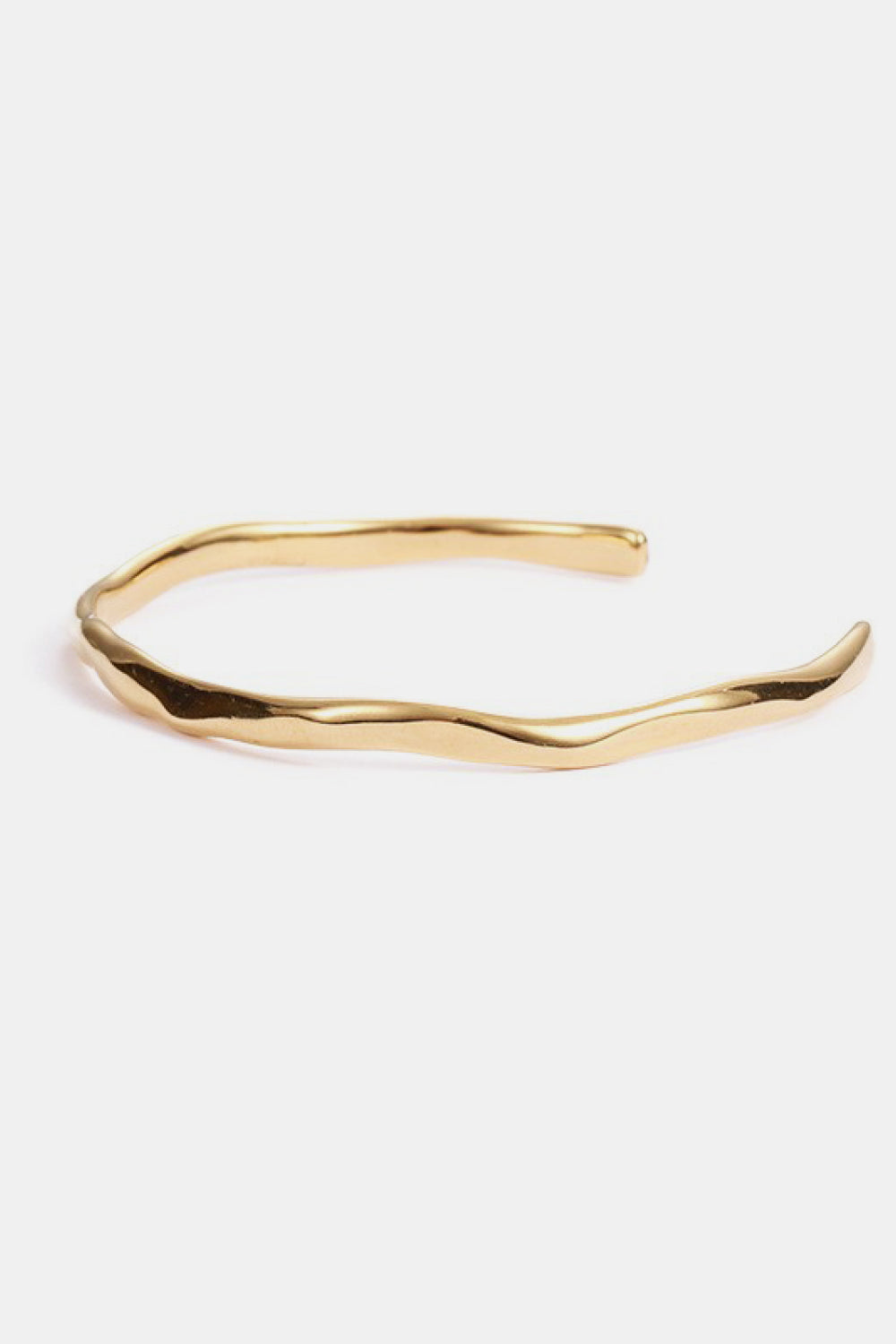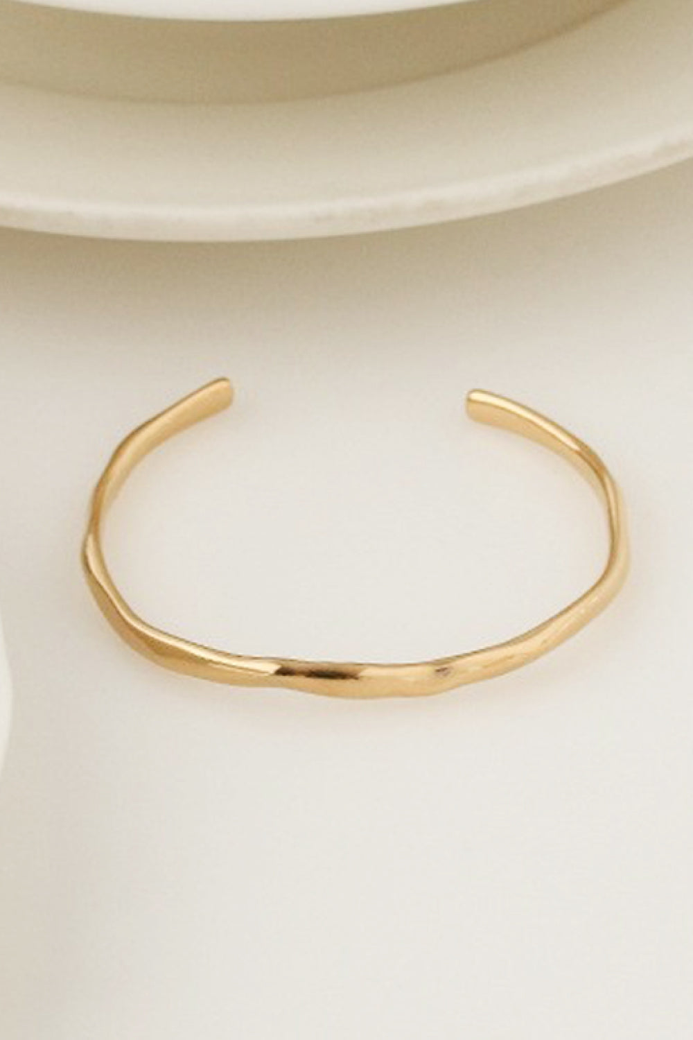 An essential in every woman's jewelry box is a simple bracelet. This one is gold-plated with a hammered design to mix things up.