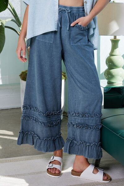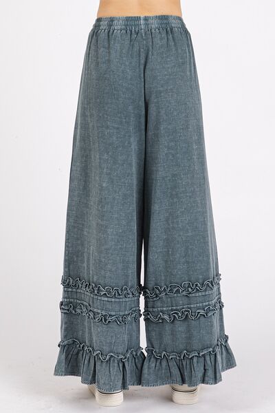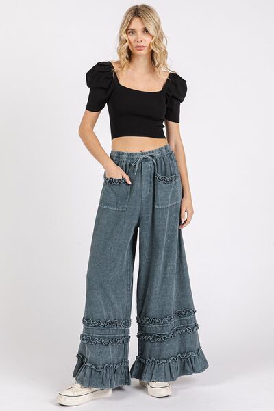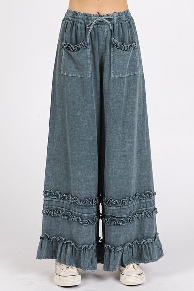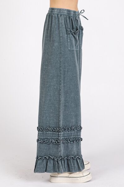 Mittoshop Ruffle Trim Pocket Mineral Wash Wide Leg Pants tt