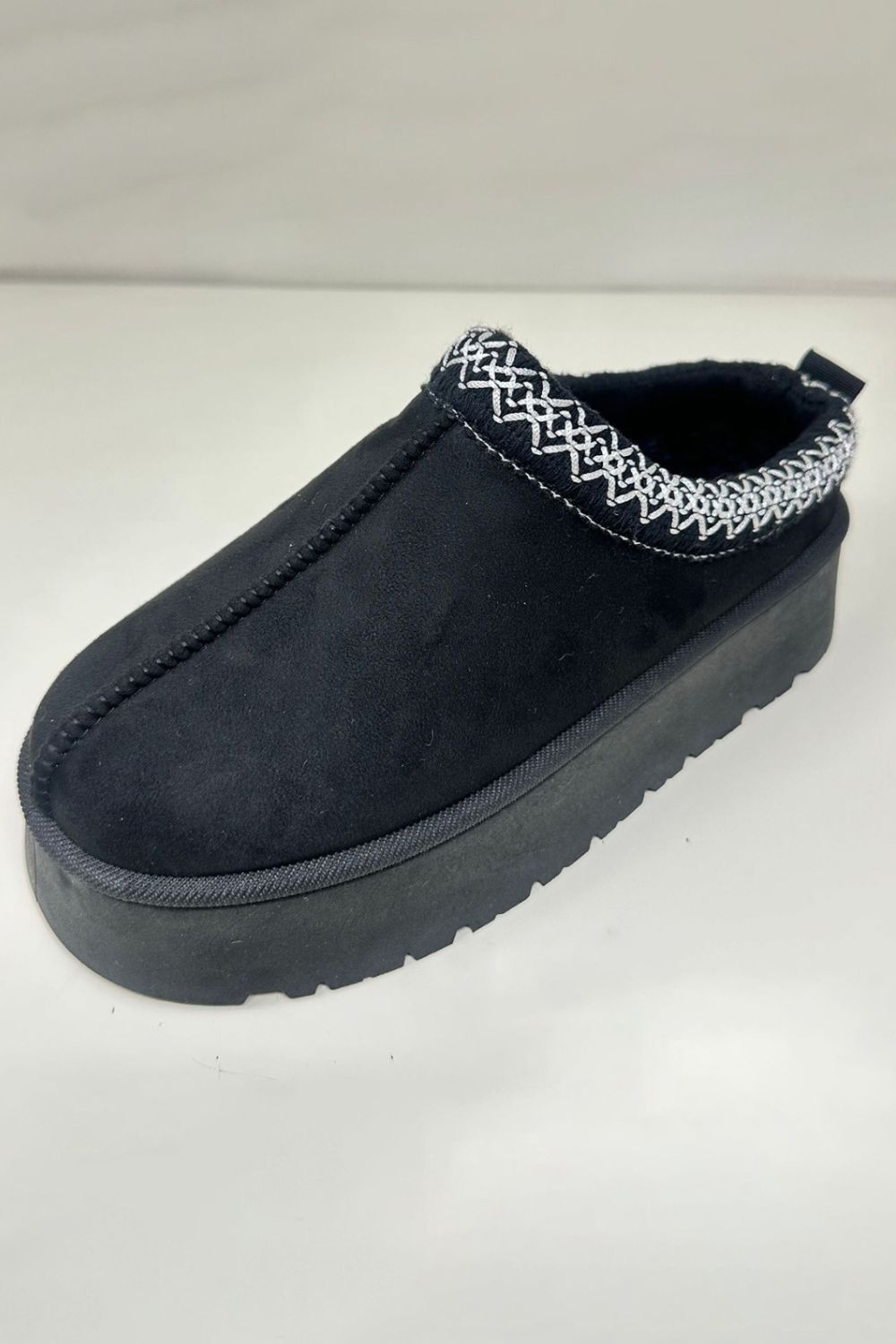 WILD DIVA Embroidered Trim Round Toe Platform Boots